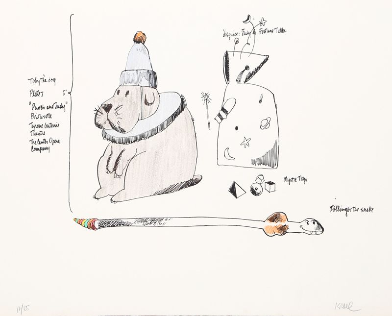 Robert Israel, Toby the Dog, Judy as Fortune Teller, Hand Colored Lithograph