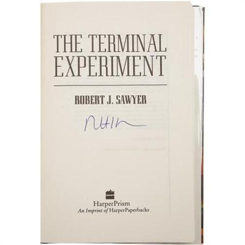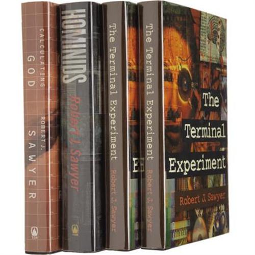 <B>Robert J. Sawyer: Four First Editions.</B></I> Includes the following:<BR><B><I>The Terminal Experiment.</B></I></B></I> (New York: HarperPrism, 1995), first edition signed, 333 pages, black boards, 8vo, dust jacket. Condition (book/ dj): as new/ as new.<BR><B><I>The Terminal Experiment.</B></I></B></I> (New York: HarperPrism, 1995), first edition signed, 333 pages, black boards, 8vo, dust jacket. Condition (book/ dj): as new/ as new.<BR><B><I>Calculating God.</B></I></B></I> (New York: Tor Books, 2000), first edition signed, 334 pages, black boards, 8vo, dust jacket. Condition (book/ dj): fine/ fine.<BR><B><I>Hominids: Volume One of the Neanderthal Parallax.</B></I></B></I> (New York: Tor Books, 2002), first edition, 444 pages, black boards, 8vo, dust jacket. Condition (book/ dj): as new/ as new.<BR><BR><b>Shipping:</b> Books & Catalogs (<a target="_blank" href="http://www.heritageauctions.com/common/shipping.php">view shipping information</a>)