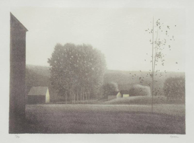 Robert Kipniss, Cotton Ball Trees Center, Lithograph