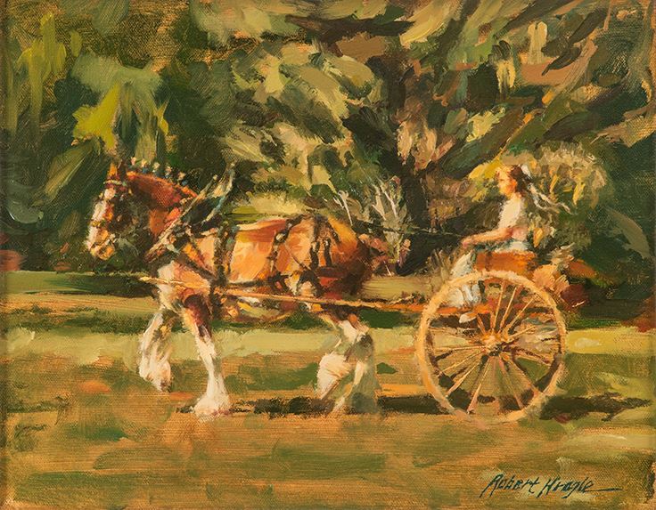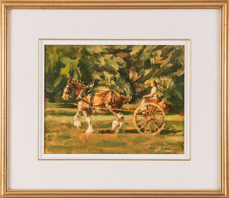 Robert Krogle (20th/21 centuries). Around the Grounds. 11" x 14" oil on canvas. Signed lower right. Verso: Signed and titled on stretcher bar.