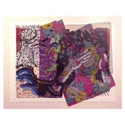 CUPID & PSYCHE, 1985, monoprint and color etching on stitched fabric, 41 x 53", signed and dated, framed. $3000/5000