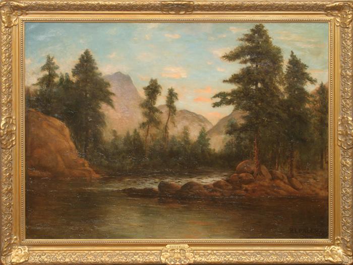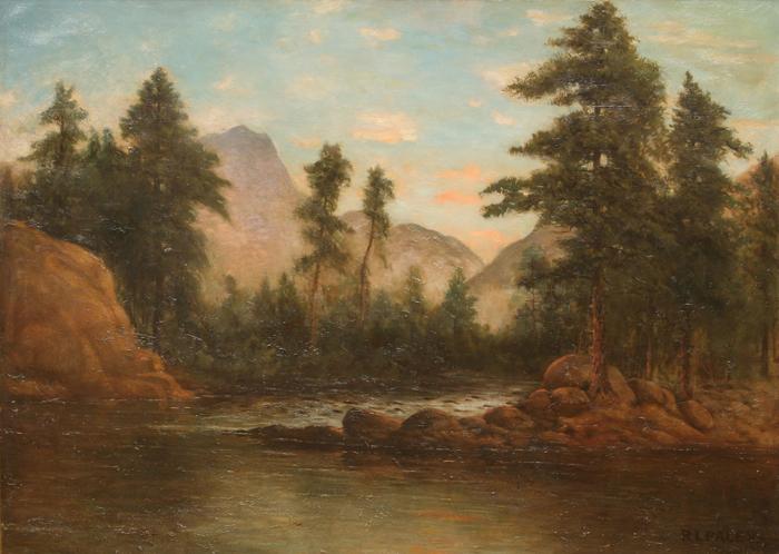 Robert L. Paley (20/21st century). Cheyenne Creek, 1906. 36" x 48" oil on canvas. signed lower right. Condition Report: Black lights clean. 1/2" paint loss in lower left corner. Slight craquelure throughout entire painting.