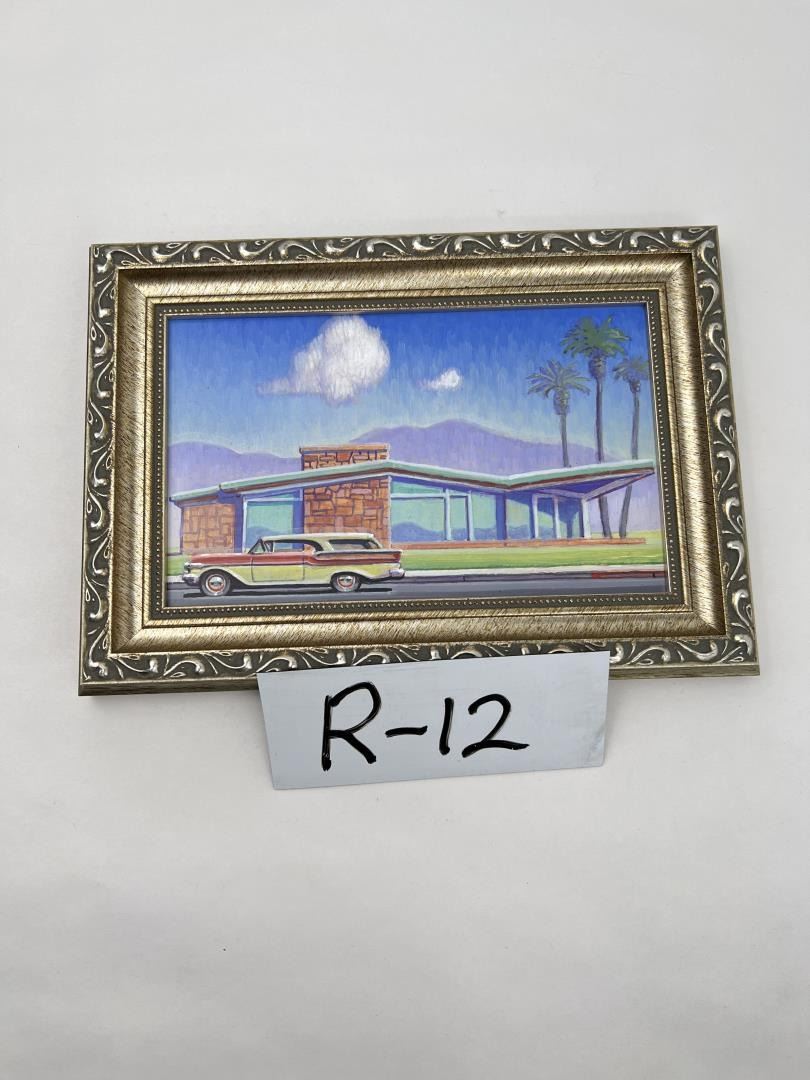 Title is Mid Century Mercury. 6" by 6" unframed. 7" by 10" framed. Robert W. LaDuke (Born 1961) is active/lives in California, Massachusetts. Robert LaDuke is known for Nostalgia, cityscapes, automobiles. Robert LaDuke's narrative paintings are a combination of memories, dreams and everyday life. Based on America in the 1930-40s, his art usually includes some form of transportation and features the toys which were popular during that era. Robert W. LaDuke Born 1961, Holyoke, Ma. Education 1994 Bachelor of Fine Arts, The School of the Art Institute of Chicago Exhibitions 2002/01 Diane Nelson Fine Art Gallery, Laguna Beach, CA 2001 DNFA Gallery, Pasadena, CA 1999/98/97 Mendenhall Gallery, Pasadena, CA 1997/96 Griffin Linton Contemporary Exhibitions, Venice, CA 1995 Irvine Fine Arts Center, Irvine, CA 1994 The School of the Art Institute of Chicago, Chicago, EL Awards 1995 The Torana Art League, All Media 1995, Peter Frank - Juror, Irvine Fine Arts Center, Irvine, CA 1992 Presidential Scholarship, The School of the Art Institute of Chicago, Chicago, EL Publications 2002 New American Paintings, March/Volume 30 2001 Communication Arts Magazine July 01 1999 New American Painting December/Volume 25 Artweek Magazine, June/Volume 30 1996 LA Weekly, July 25
