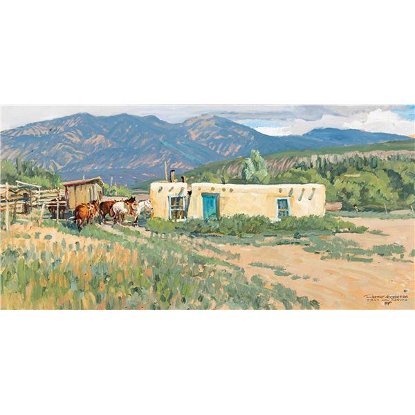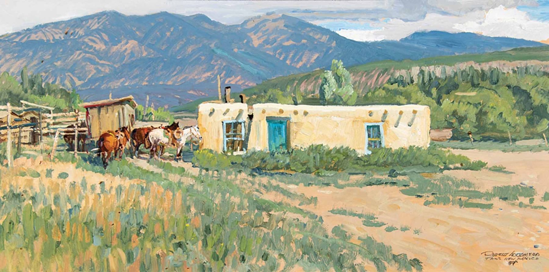 Artist: Robert Lougheed. Signed lower right, Taos, Newmexico. Verso: Signed. Dimensions: 12 x 24 inches. Shipping: 22x34. Oil on board