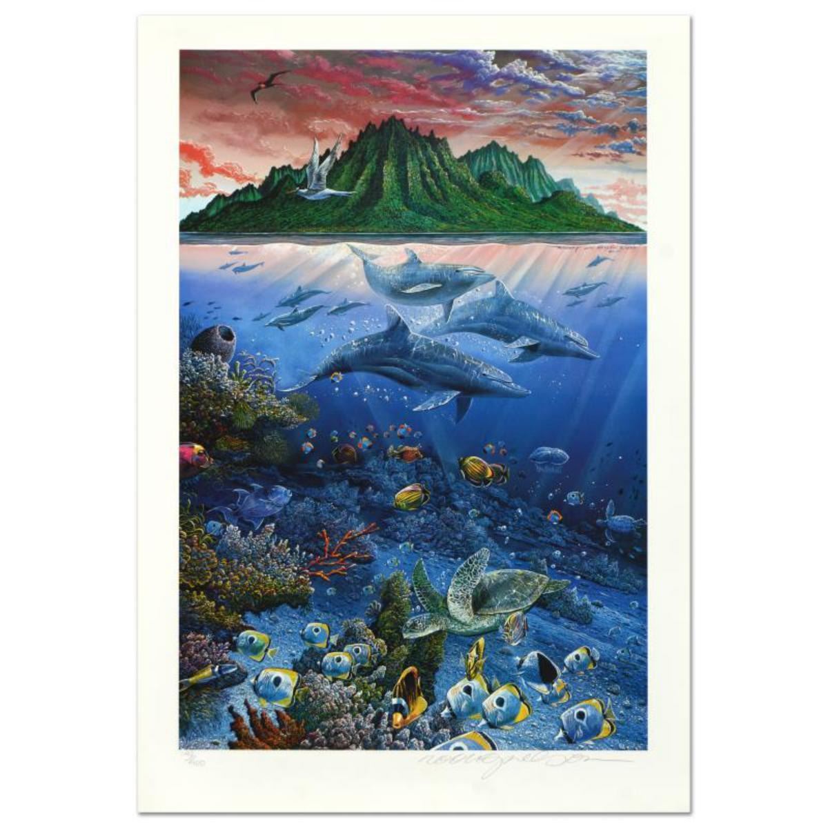 "Hawaiian Muses" is a limited edition mixed media on paper by Robert Lyn Nelson, numbered and hand signed by the artist. Includes Certificate of Authenticity. Measures approx. 19" x 27.5" (border), 16" x 24" (image). Reference #: 228280.
