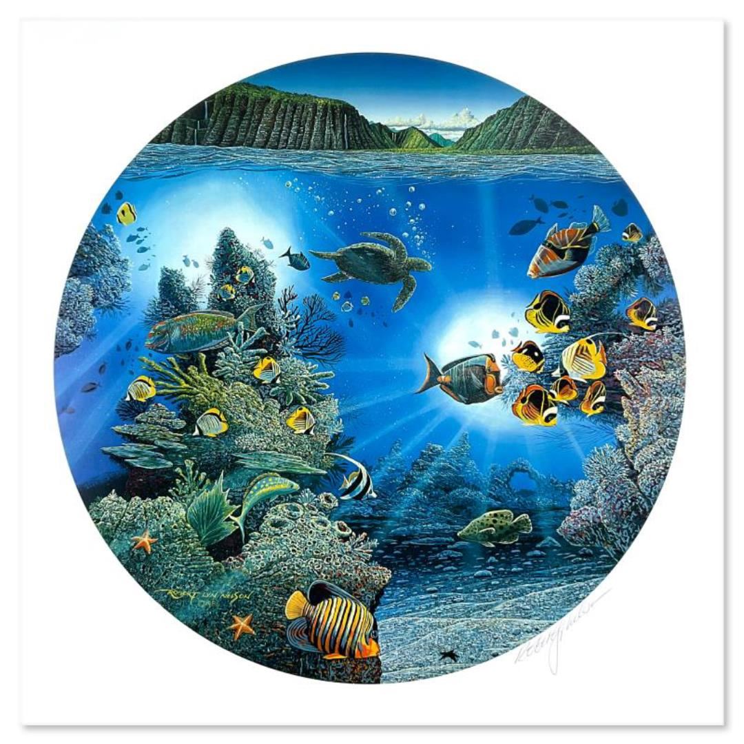 "Serenity of Waipio" is a limited edition mixed media on paper by Robert Lyn Nelson, numbered and hand signed by the artist. Includes Letter of Authenticity. Measures approx. 27.5" x 30" (border), 24" (image-diameter). There are minor imperfections in the white border area (creases or very small tears that may be concealed when the piece is framed.