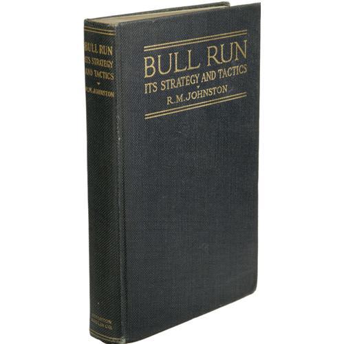 <B>Robert M. Johnston Signed: <I>Bull Run, Its Strategy and Tactics. </B></I></B></I> (Boston and New York: Houghton Mifflin Company, 1913), first edition, xiv - 293 pages, ten maps, index, cloth covers, top edge gilt, 8vo (5.75" x 8.75"), signed "<I>R.M. Johnston</B></I>". This book is in very good condition with minor shelf wear and a clipped front end-sheet. Nevins calls this "A generally accurate and objective analysis of the preliminary plans, the conduct of the campaign and battle, and their results."<BR><BR><b>Shipping:</b> Books & Catalogs (<a target="_blank" href="http://www.heritageauctions.com/common/shipping.php">view shipping information</a>)