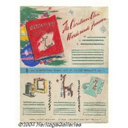 <B>Robert May - Rudolph's Fun Book 32-page Presentation Book Original Art (Wards, circa 1950s).</B></I> From 1920 to 1964, Sam Gold of Premium King, and from 1944 to 1974, Gordon Gold of Living Legend, were considered the orginators and largest creators and producers of children's premiums in the United States and Europe. They sold to the giants of advertising and their advertising agencies; such companies as General Foods, Kelloggs, Quaker Oats, General Electric and Bordens. This detailed hand-drawn presentation layout booklet featuring Rudolph the Red Nosed Reindeer, leading readers through a plethora of fun puzzle pages was created with the participation of Robert May, Rudolph's creator. The detailed art is drawn in colored pencil, and the booklet measures 8" x 10.5". It is stapled and is a very tight comprehensive of what the finished printed booklet would look like. An additional alternate comprehensive drawing of the back cover is included. Also accompanying the lot is a "Letter of Origin," written by Gordon K. Gold, and signed and dated by him on January 7, 2000. Here's a chance to bid on a remarkable work of art, showcasing Rudolph, a beloved American Christmas icon! 3 items <BR><BR><B>Important notice:</B> Heritage usually auctions material at the rate of 200-250 lots per hour. On some occasions eBay Live bid software or the Internet may not be able to keep up with the pace of the auction. We recommend placing a realistic absentee bid now as insurance to avoid disappointment. Occasionally the auctioneer may eliminate or reject an eBay Live bid, and the auctioneer may also reopen a lot after the close of the eBay live bidding (usually because we missed an audience bid), and may reject your bid even if it shows you as the winning bidder. By bidding via eBay Live, you agree that Heritage may award the lot to another bidder at its sole discretion under the circumstances described above or any other reasonable circumstances. Since eBay bids are not shown to us until we open the lot on the floor, we treat those bids just like floor bids. In most cases the floor responds before the eBay bid is presented to us, due to Internet lag time, so for consistency we have made it a policy that floor bids are always considered first over tie eBay live bids. Also please note that all Heritage lots purchased through eBay Live carry a 20% Buyer's Premium. Please make sure you read the Terms and Conditions before you bid.