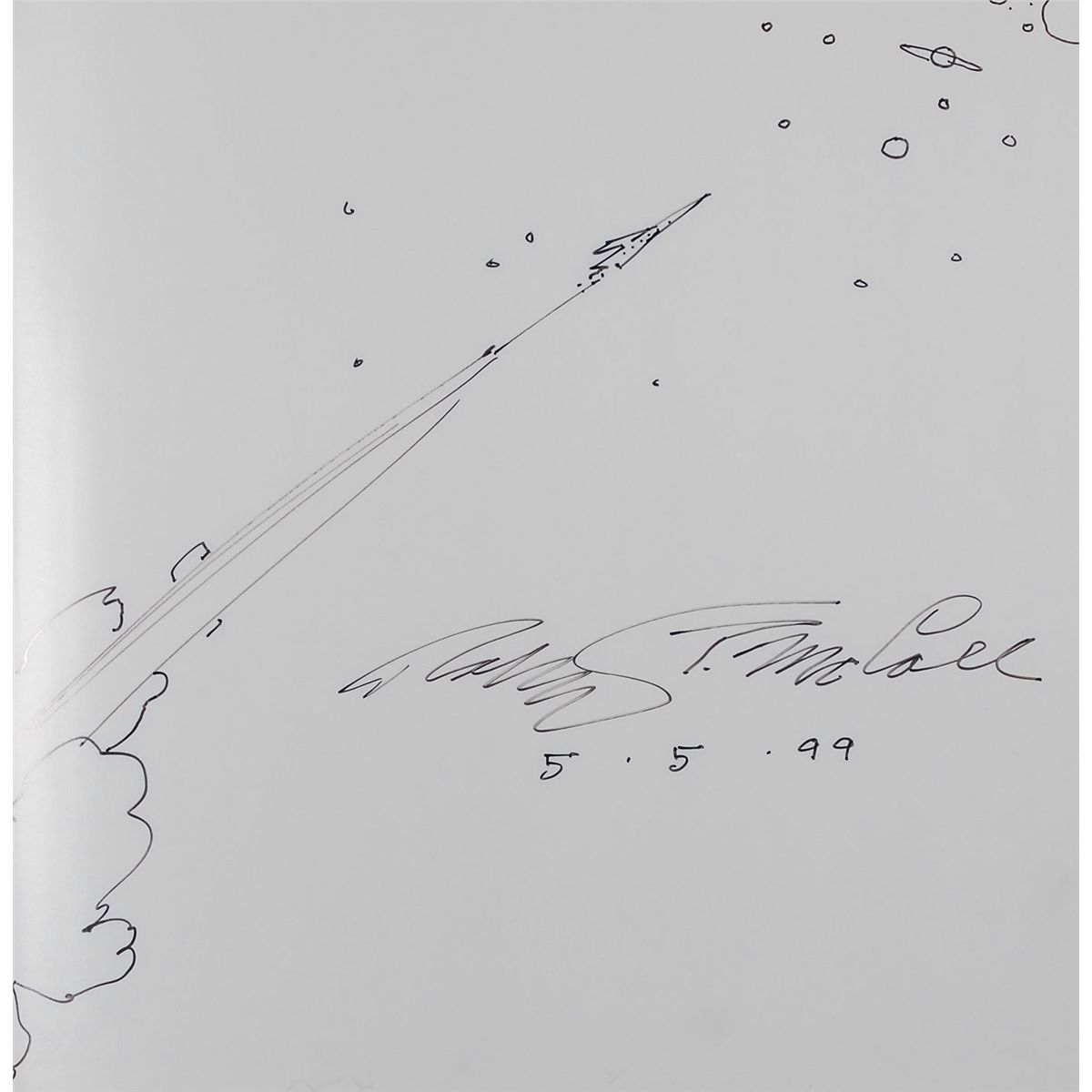 Signed book: The Art of Robert McCall. First edition, first printing. NY: Bantam Books, 1992. Hardcover with dust jacket, 11.5 x 11.5, 150 pages. Signed on the first free end page in black felt tip, “Robert T. McCall, 5-5-99,” adding a large sketch of a rocket launching into space that extends onto the front pastedown. In fine condition.