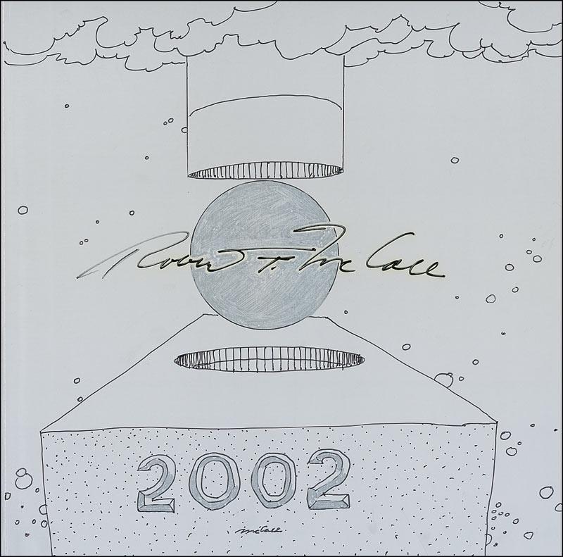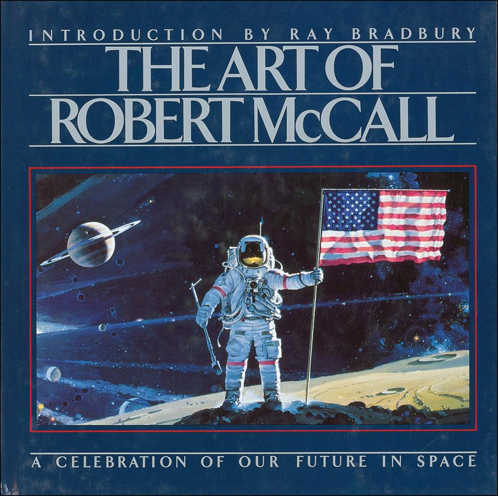 Signed book: The Art of Robert McCall, A Celebration of Our Future in Space. First edition, first printing. NY: Bantam Books, 1992. Hardcover with dustjacket, 11.5 x 11.5, 150 pages. Original full-page drawing on first free page and signed in black felt tip by the late NASA artist Robert McCall. In fine condition, with a bit of light haloing to signature. Accompanied by a letter of authenticity from McCall's daughter, stating the sketch was done on May 25, 2002.