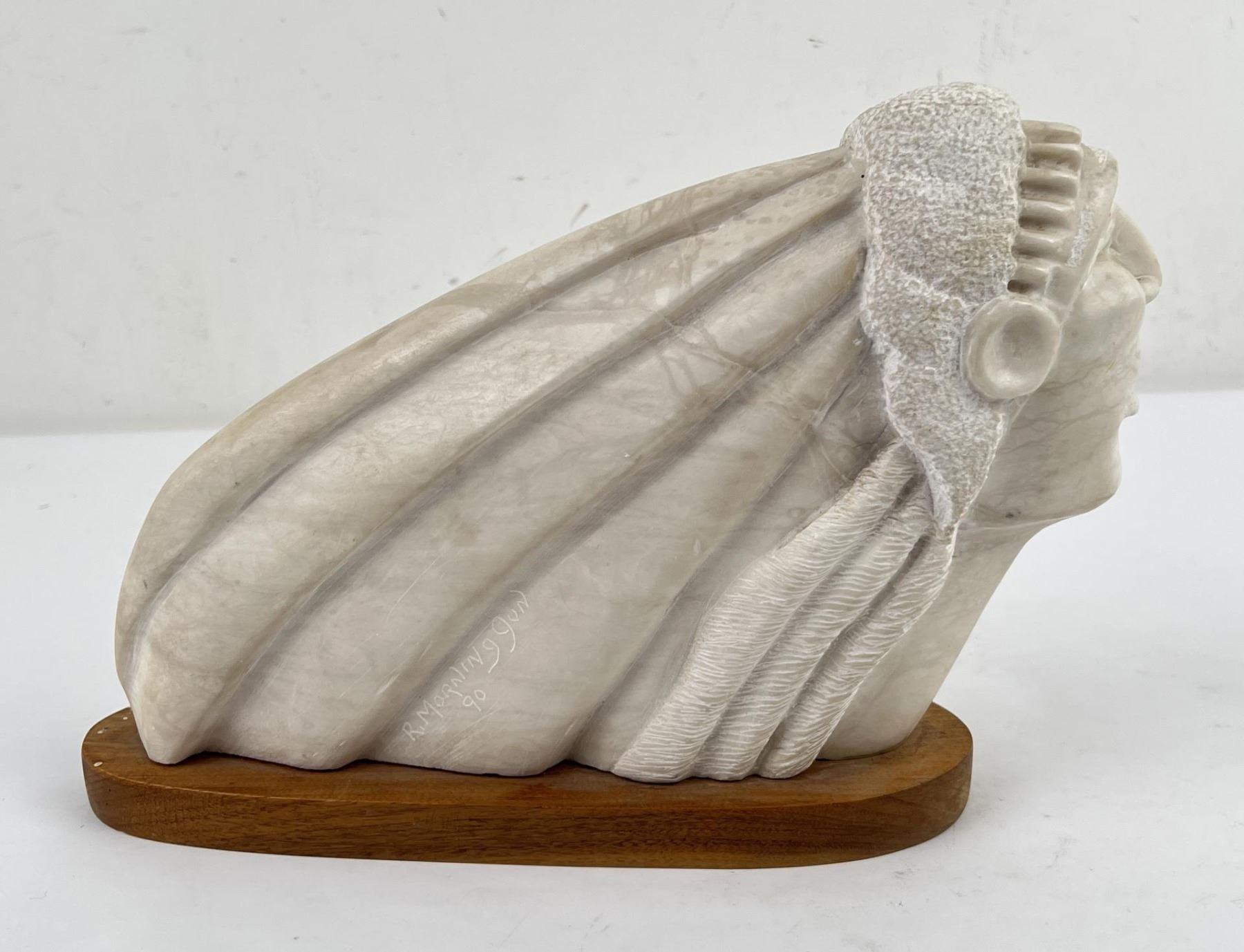 9 1/2" tall, 12 3/4" long. Robert Morning Gun (Born 1949) is active/lives in Montana. Robert Morning Gun is known for Native American sculpture. Allard Auction Collection Inv: AX