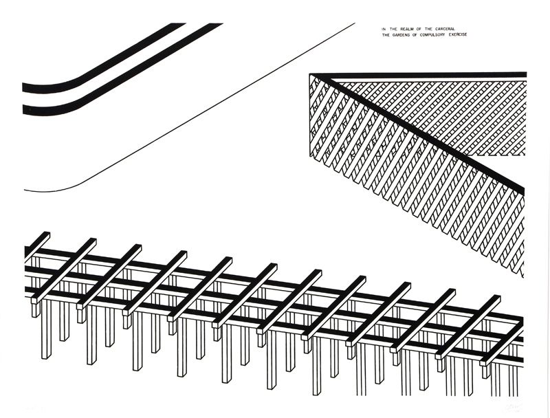 Robert Morris, In the Realm of the Carceral: The Gardens of Compulsory Exercise, Aquatint Etching