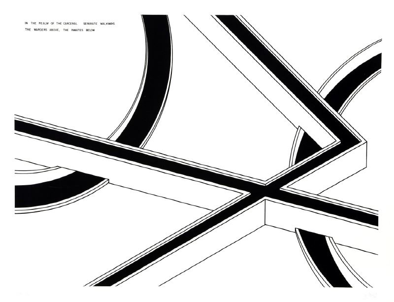 Title: Seperate Walkways: The Warders Above, the Inmates Below from In the Realm of the Carceral