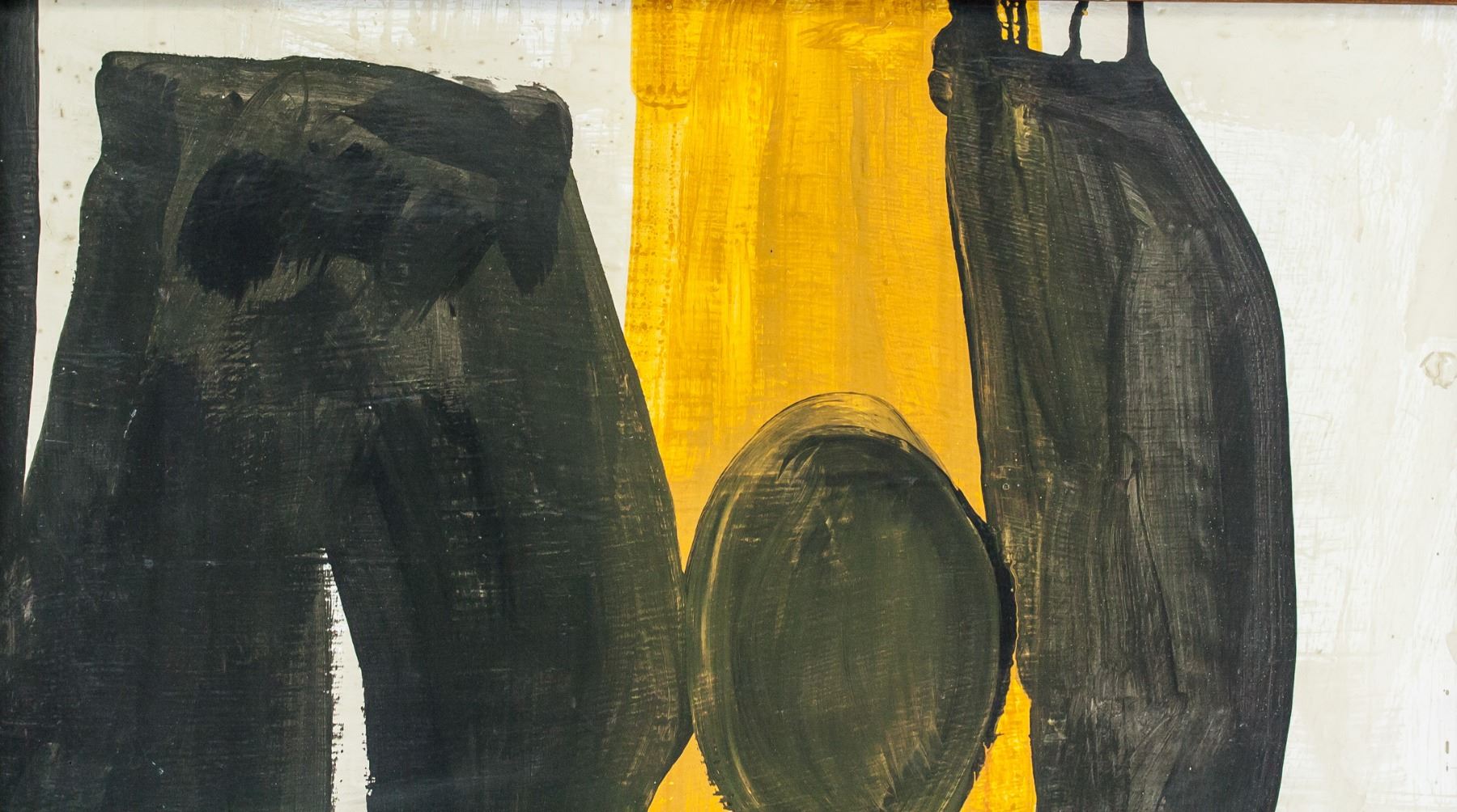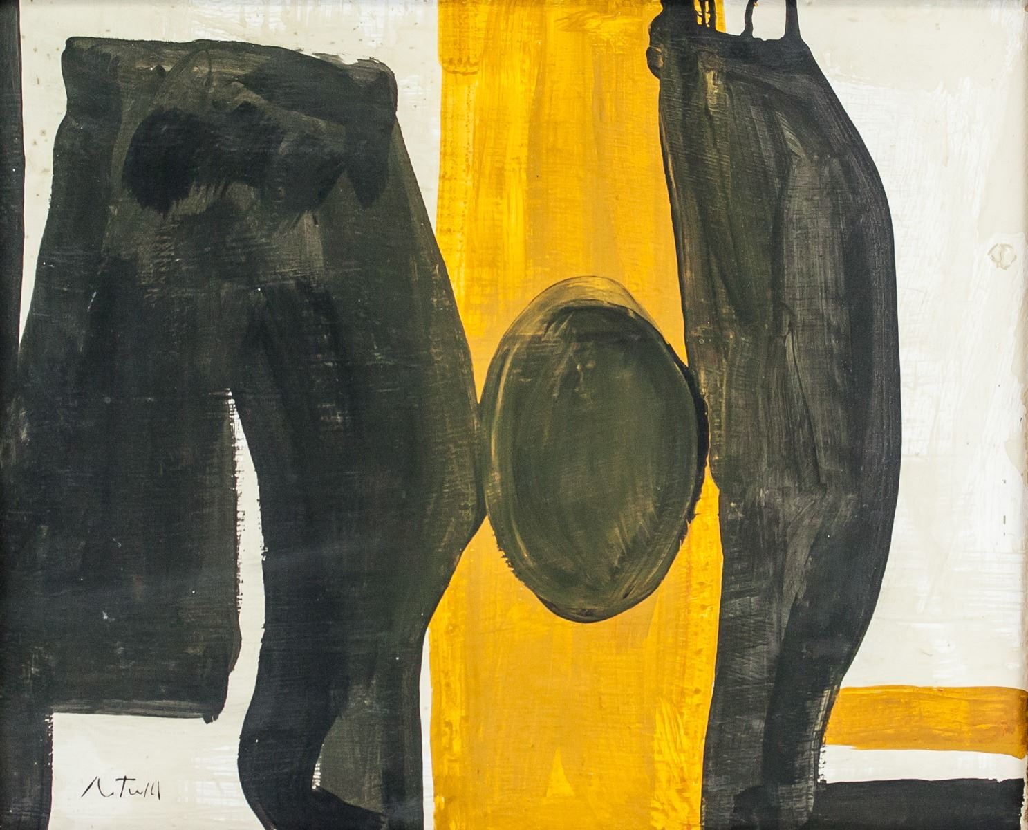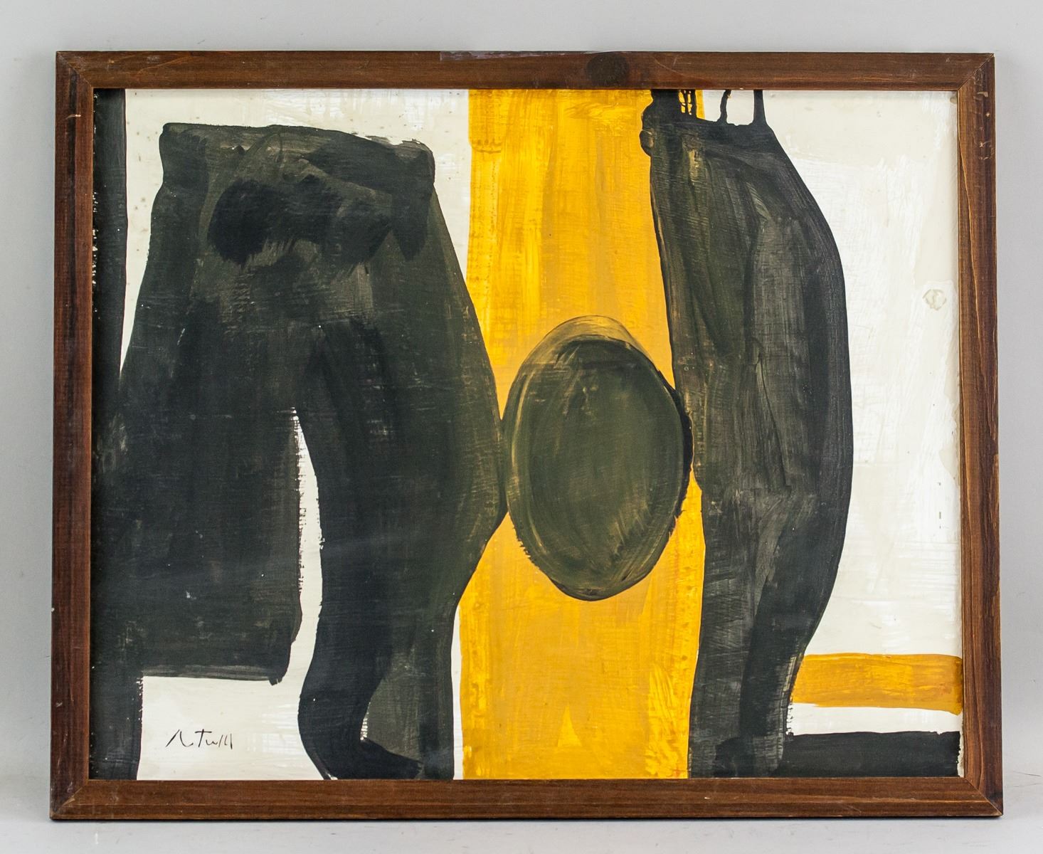Oil on canvas, stretched and framed. Featuring an abstract expressionist composition. Signed on the lower left corner. Attributed to Robert Motherwell (1915-1991, American). 40.5 x 51 cm (15.9 x 20.1 inches). Frame size: 44 x 54.5 cm (17.3 x 21.5 inches). PROVENANCE: Southern Ontario estate