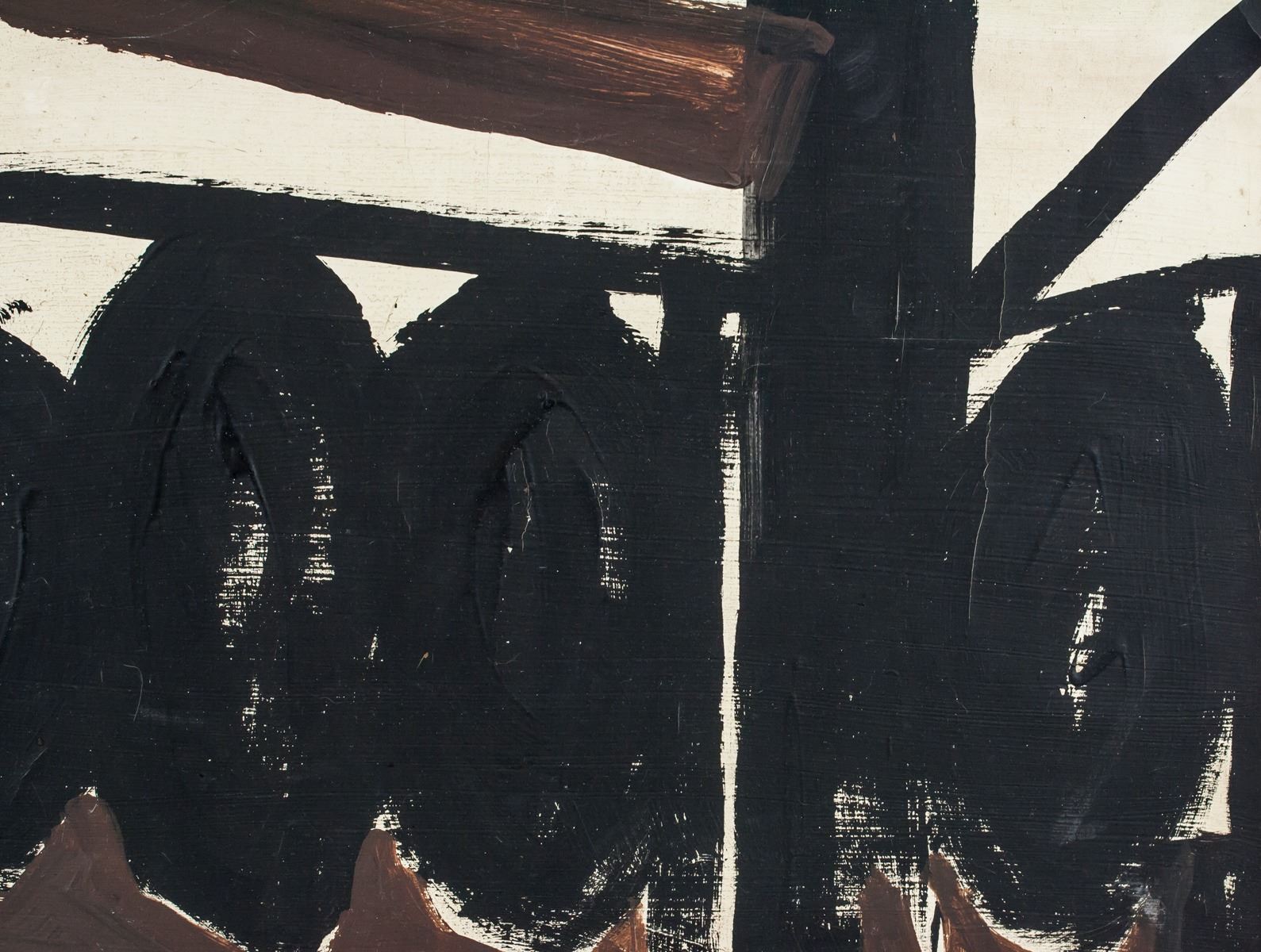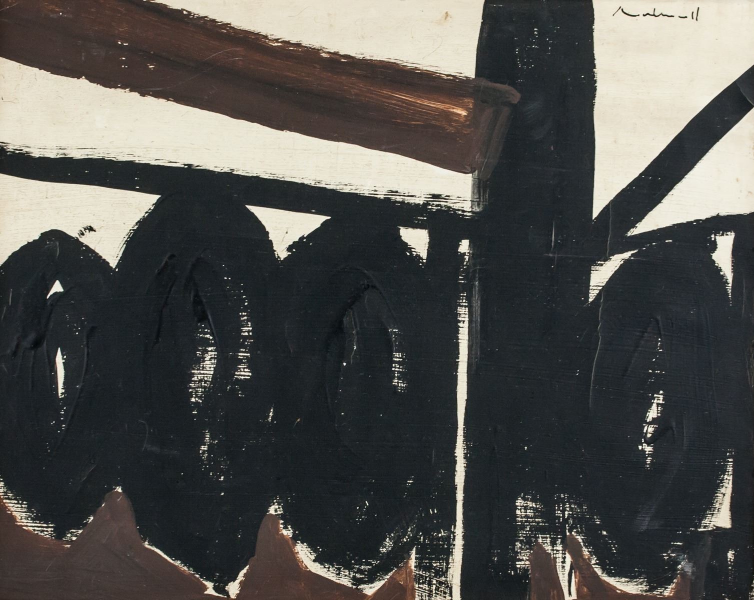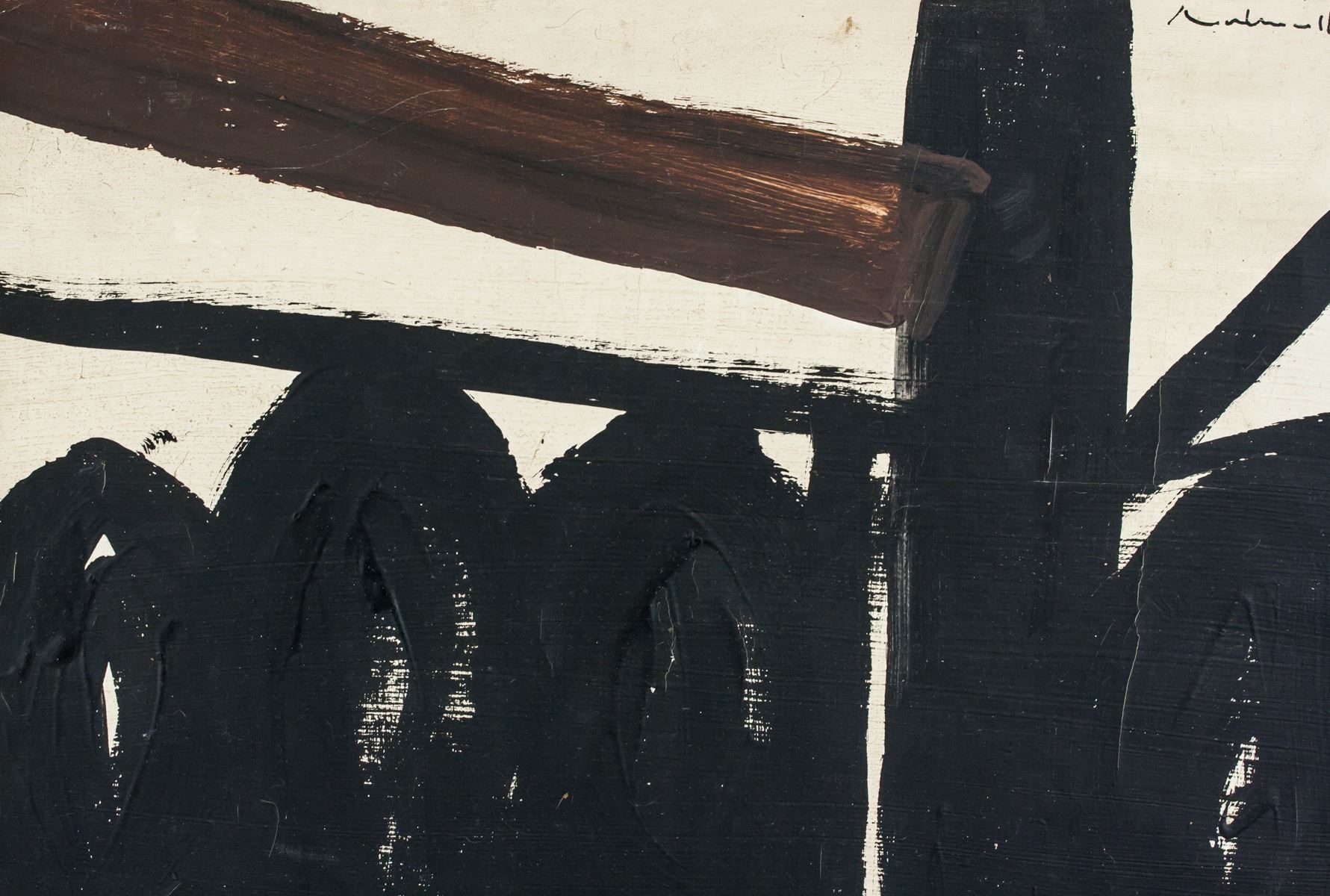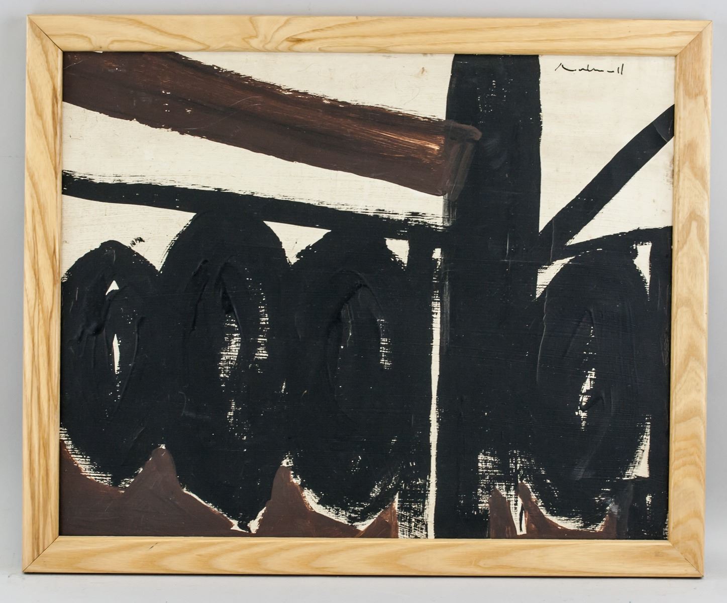 Oil on canvas, stretched and framed. Featuring an abstract expressionist composition. Signed on the upper right corner. Attributed to Robert Motherwell (1915-1991, American). 40.5 x 51 cm (15.9 x 20.1 inches). Framed size: 46 x 56 cm (18.1 x 22.0 inches). PROVENANCE: Southern Ontario estate