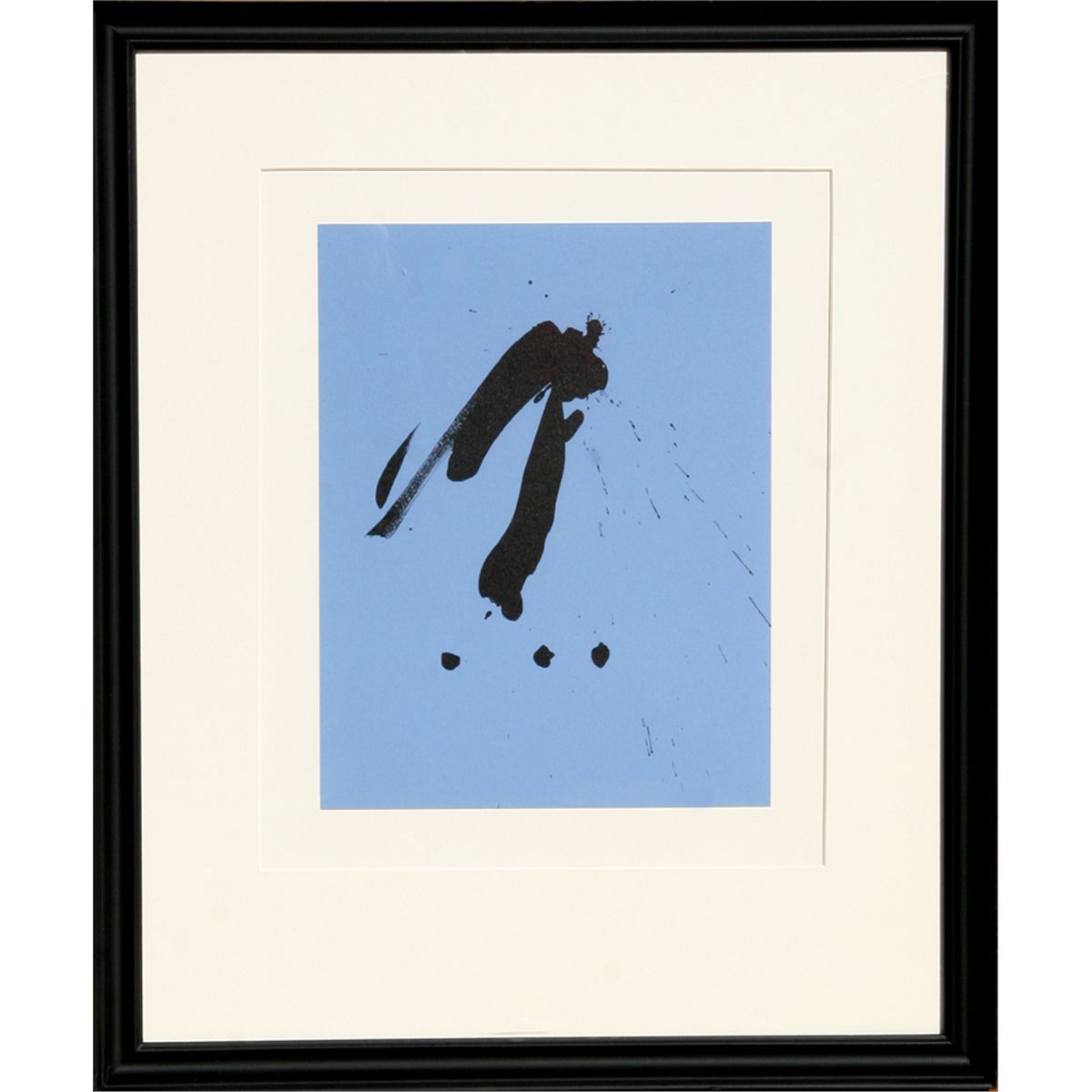 From the portfolio "Three Poems" by Octavio Paz illustrated with 27 original lithographs by Motherwell. Colophon sheet is signed in pencil by Paz and Motherwell and numbered 233/750. A copy is included with lithograph.