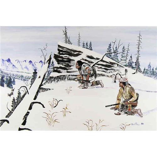 Canadian [20th/21st century] WINTER HUNT; 1980 acrylic on board 24 x 36 in. (61 x 91.4 cm) signed & dated