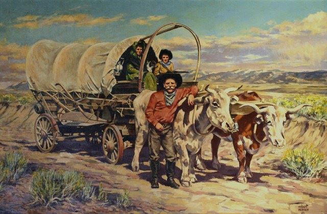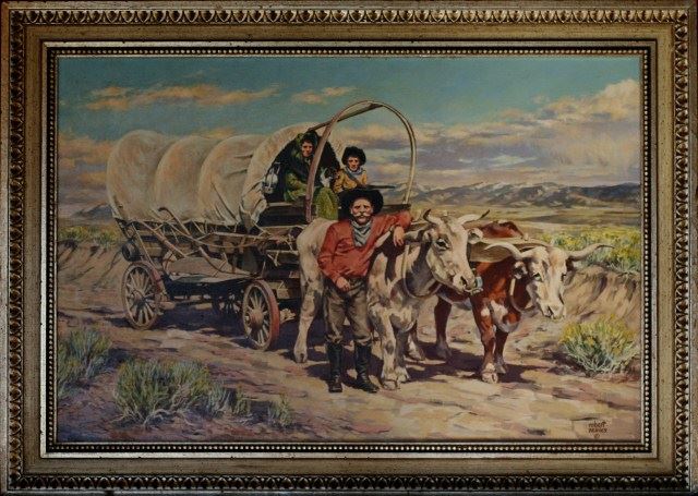 covered wagon, contemporary western scene", 20" x 30", signed lower right, #206, '1975 Verso, -562621-B
