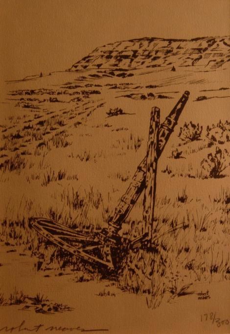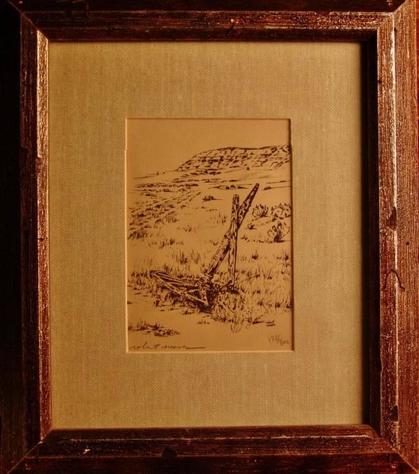 Landscape, trail and old wagon wheel.7" x 5" sight size, pencil signed lower left, numbered edition size of 178 out of 300, -562585-
