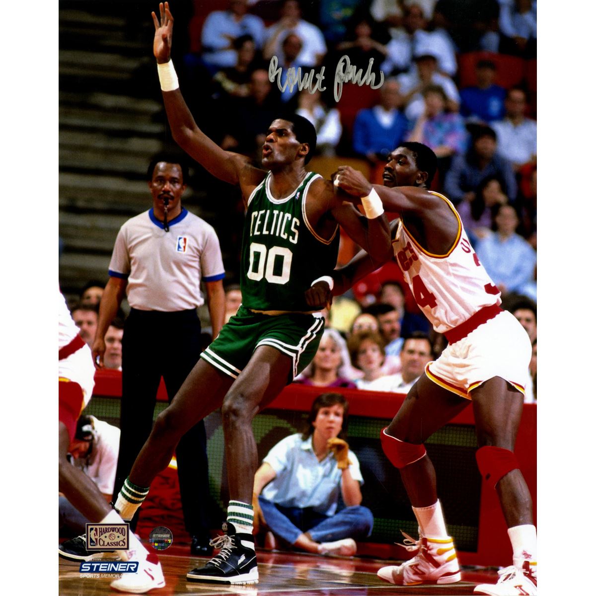 Robert Parish Signed Posting Up Hakeem Olajuwon 8x10 Photo