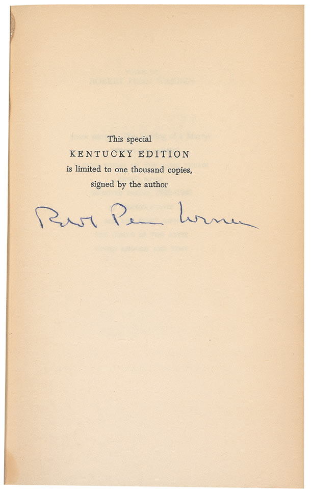Two hardcover books: World Enough and Time, Kentucky Edition, signed on the limitations page; and A Place to Come To (with dustjacket), signed on the first free end page. In fine condition, with a couple notations and toning to opening pages and light wear to dustjacket.