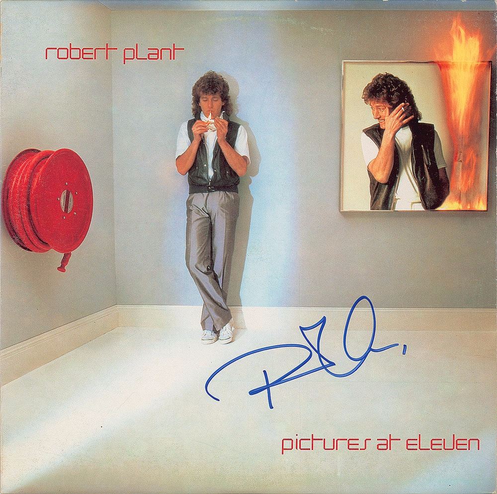 Pictures at Eleven album signed on the front cover in blue felt tip by Plant. In fine condition. The record is included. Accompanied by a full letter of authenticity from REAL.