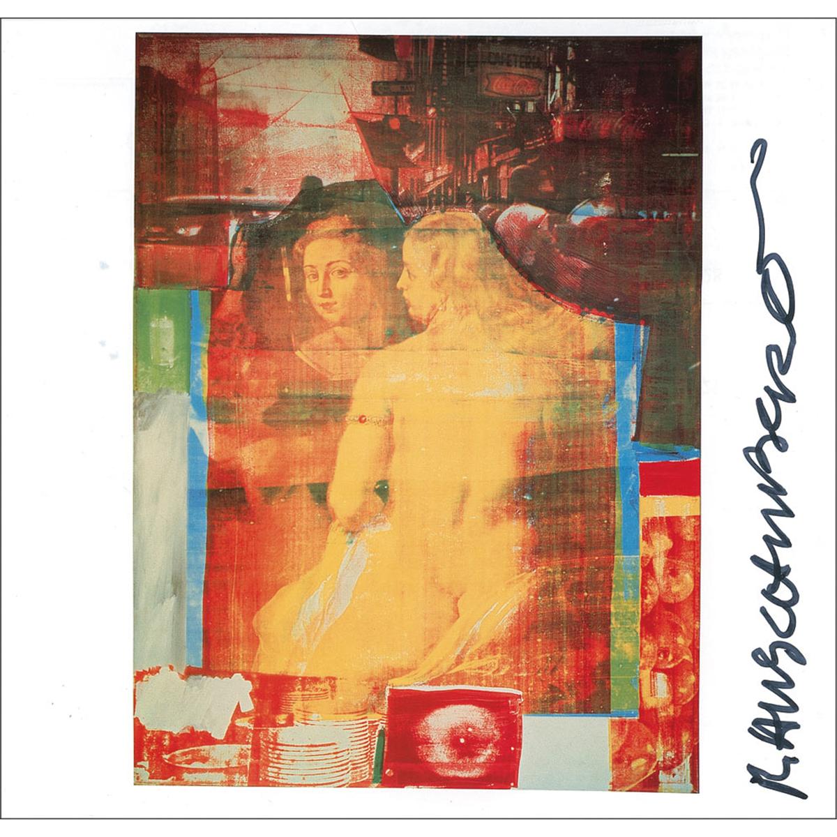 Color 11.75 x 11.25 calendar page of one of Rauschenberg’s works, signed in black felt tip, “Rauschenberg,” along the right border. In fine condition with a slight corner bend.