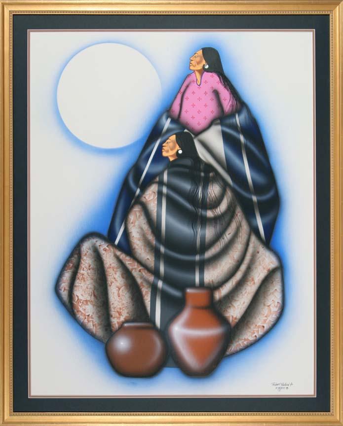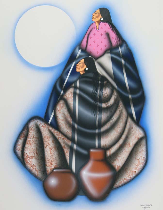 Robert Redbird, Jr. (b.1964). Blue Moon. 36" x 28" mixed media on board. Signed lower right. (est $200-400). Provenance: Ex-La Junta, Colorado Estate. For condition reports please visit: www.auctioninsantafe.com/cr2011.pdf