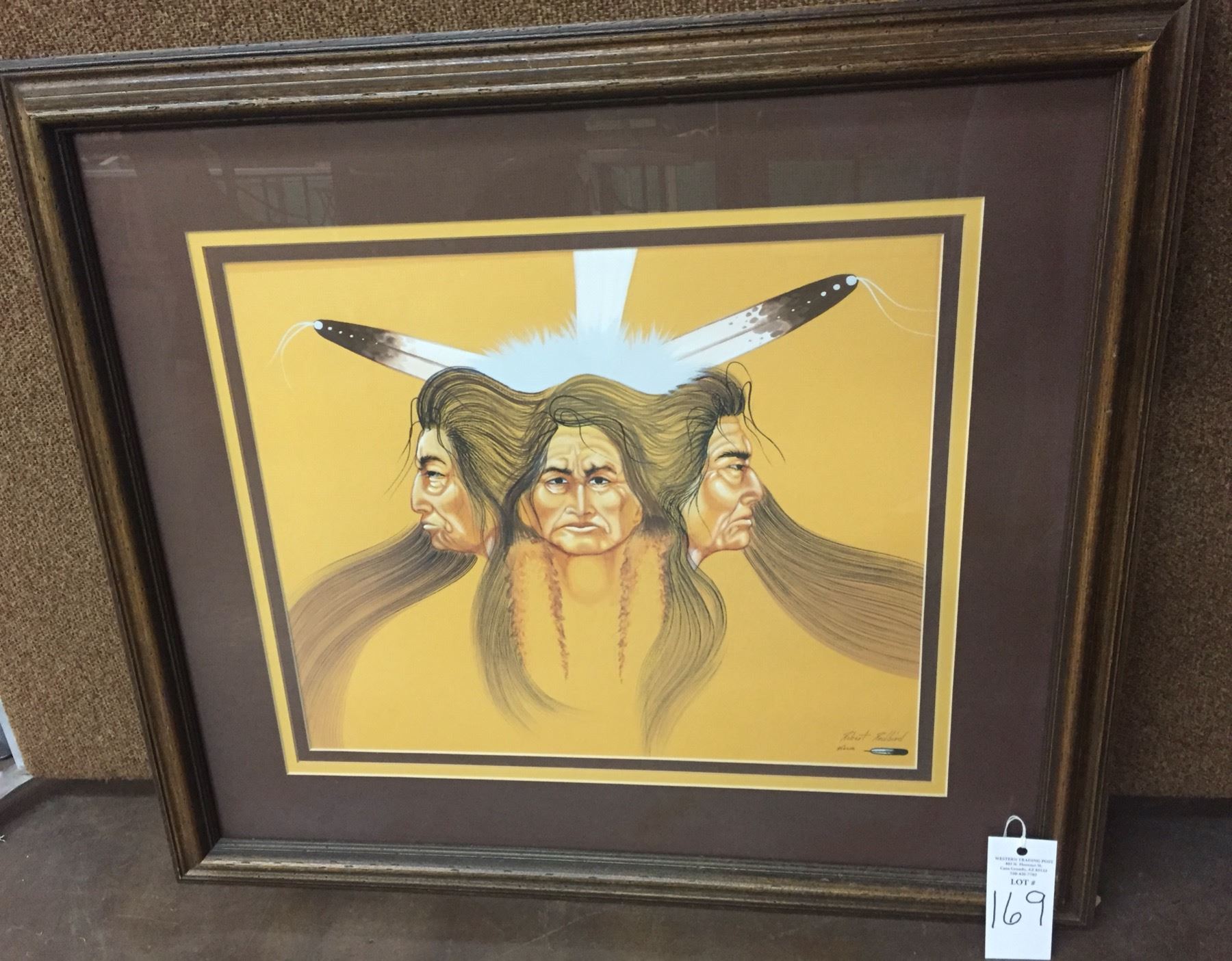 Description: Offered for sale is this stunning Robert Redbird painting featuring three different profile views of a chief. There is a nice imagery in this original water color. Maker: Robert Redbird, Kiowa (1939-2016). Approx. Age: Vintage. Size: 31-1/2 inches wide x 28 inches tall with frame. Condition: Good for its age, normal wear expected. Please look closely at the pictures - they are an important part of our description. Shipping: There will be a $10 handling, packaging fee for shipping this lot. The actual cost of postage will be added on top of that.