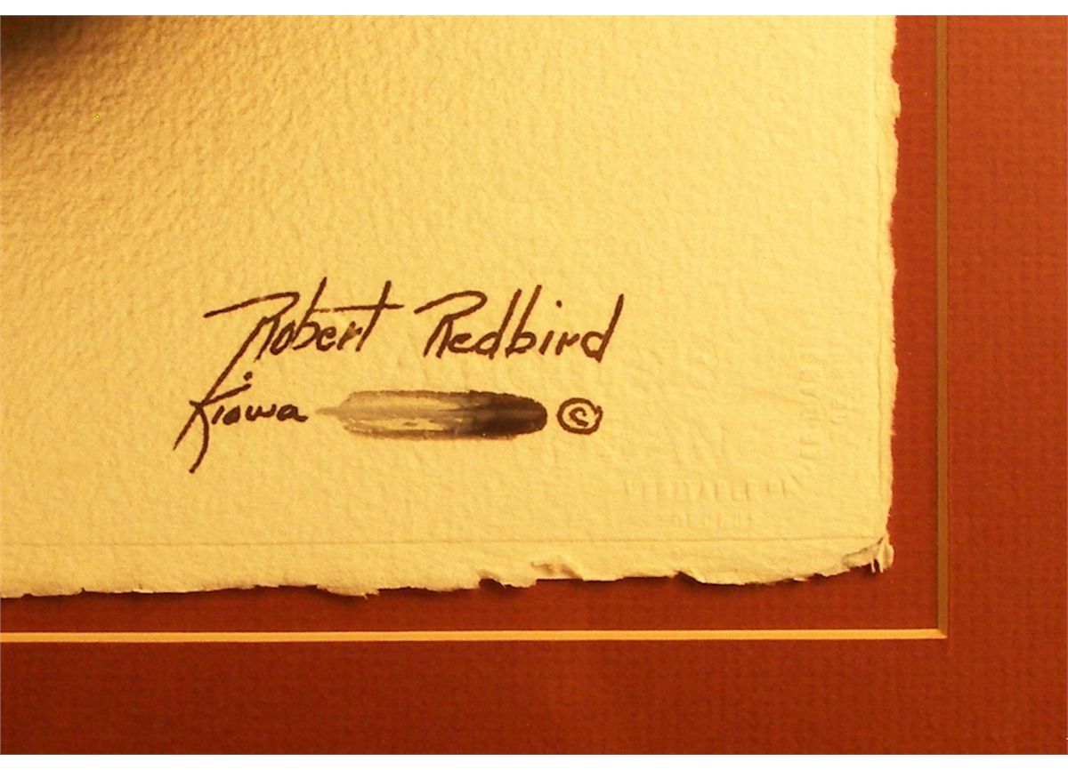 Robert Redbird Sr., Original Mixed Media, 22-1/2" x 30", Signed lower right, Signed with Kiowa and Feather.