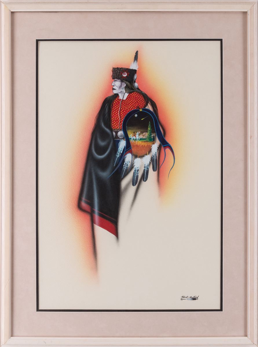 Robert Redbird, Sr. (1939 - ). Osage Warrior. 27" x 19" watercolor and gouache. Signed lower right.