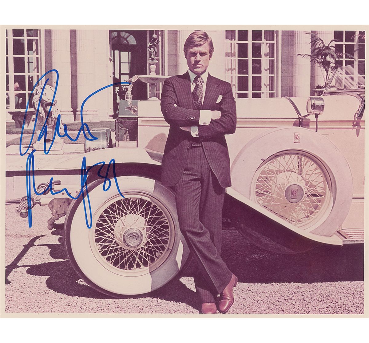 Color glossy 10 x 8 photo of Redford in The Great Gatsby, signed in blue felt tip. In fine condition.