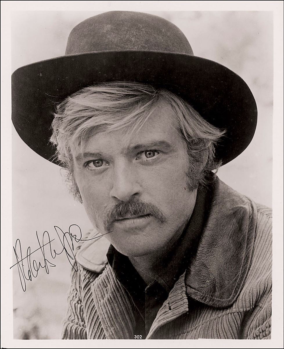 Handsome glossy 8 x 10 photo of Redford from the 1969 film Butch Cassidy and the Sundance Kid, signed in black ink. In fine condition.