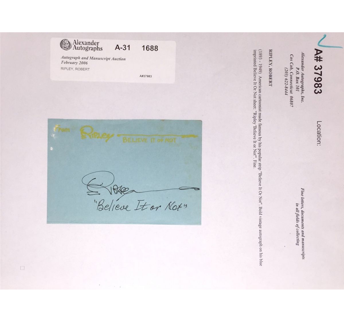 Robert Ripley of Ripley's Believe It or Not" Original Signed Autograph Page