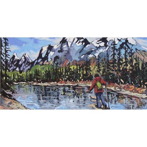 Canadian [b. 1957] ESCAPADE EN MONTAGNE oil on board 24 X 48 in. (61 x 121.9 cm) signed & titled