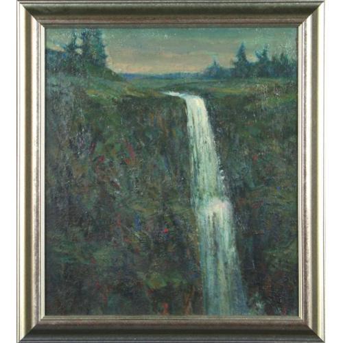 Oil on canvas landscape painting entitled ?Waterfall?, painted by Robert Rukavina