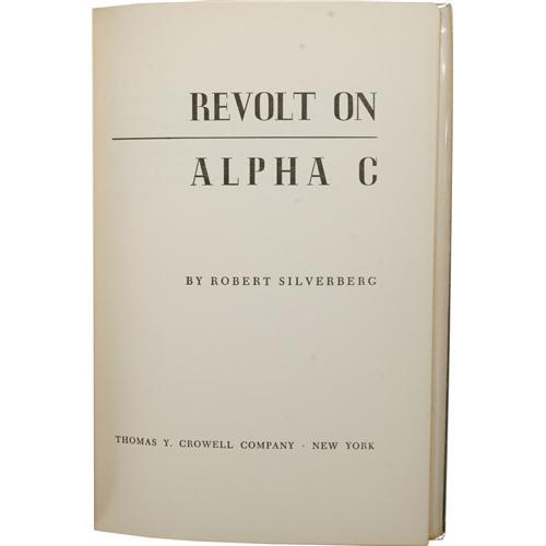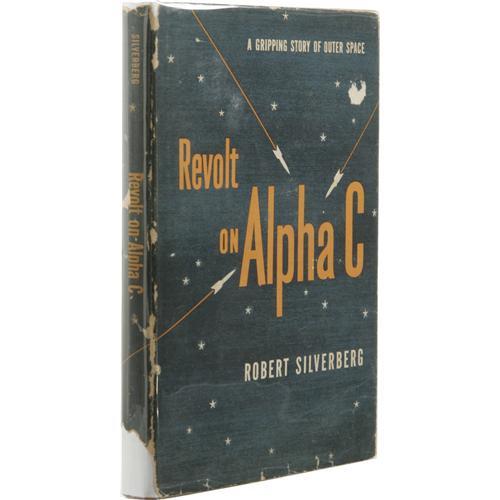 <B>Robert Silverberg: <I>Revolt on Alpha C</B></I>.</B></I> (New York: Thomas Y. Crowell Company, 1955), 148 pages, 8vo (5.5" x 8.25"), first edition. The dust jacket is in good condition despite wear and a tear at the bottom of the spine. Although it has some shelf wear, it is a very good copy of the author's first book.<BR><BR><b>Shipping:</b> Books & Catalogs (<a target="_blank" href="http://www.heritageauctions.com/common/shipping.php">view shipping information</a>)