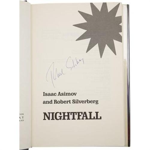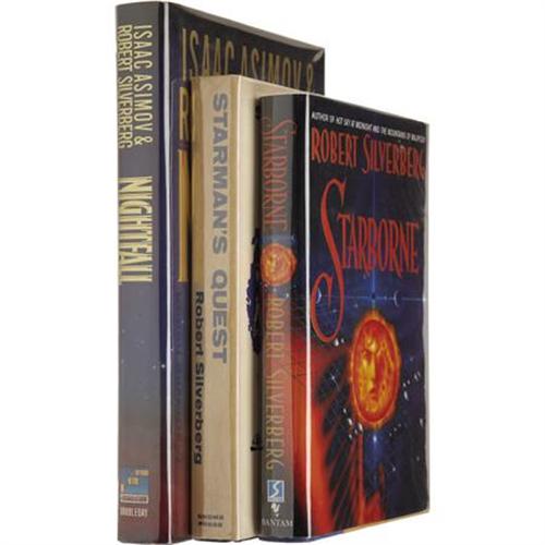 <B>Robert Silverberg: Three Signed First Editions.</B></I> Includes the following:<BR><B><I>Starman's Quest.</B></I></B></I> (Hicksville, NY: Gnome Press, 1958), first edition, 185 pages, blue boards, 8vo, dust jacket. Condition (book/ dj): good/ good.<BR><B><I>Starborne.</B></I></B></I> (New York: Spectra Bantam Books, 1996), first edition, 291 pages, blue cloth on tan boards, 8vo, dust jacket. Condition (book/ dj): as new/ as new.<BR><B><I>Nightfall (written with Isaac Asimov).</B></I></B></I> (New York: Doubleday, 1990), first edition (signed only by Silverberg), 339 pages, blue cloth on red boards, 8vo, dust jacket. Condition (book/ dj): fine/ fine.<BR><BR><b>Shipping:</b> Books & Catalogs (<a target="_blank" href="http://www.heritageauctions.com/common/shipping.php">view shipping information</a>)