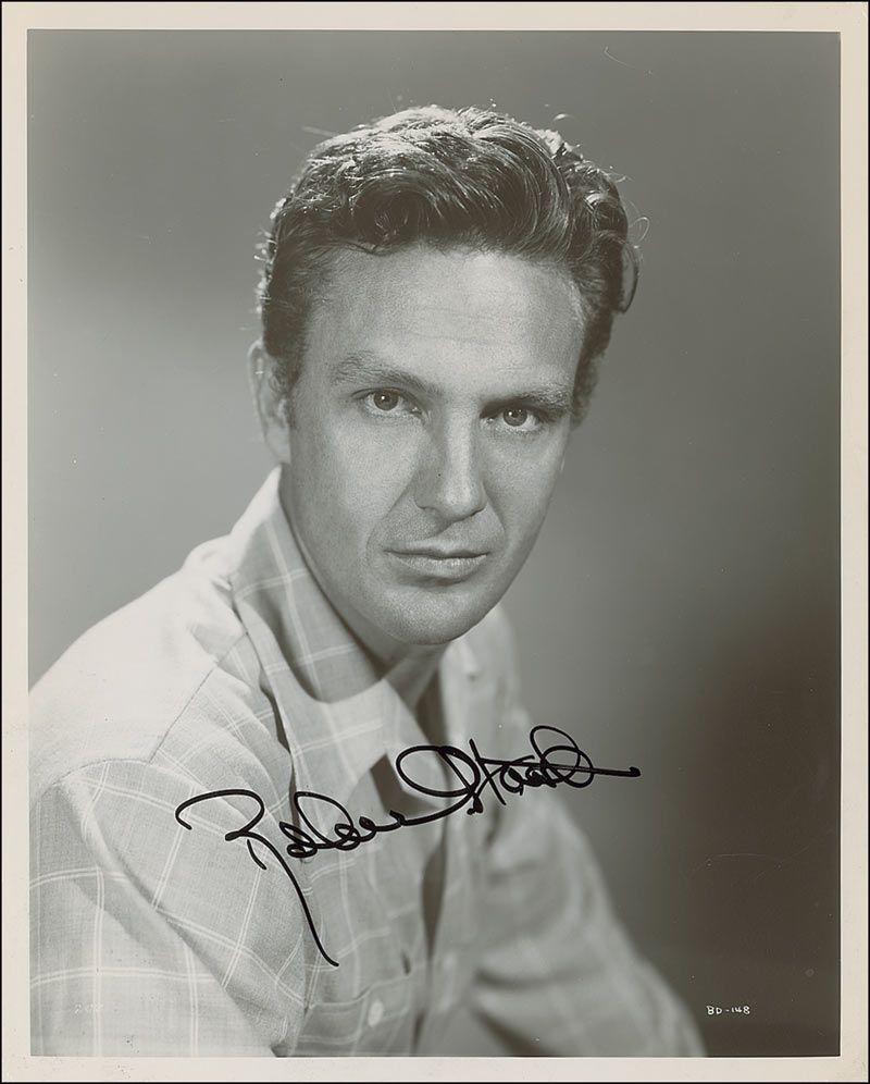 Glossy 8 x 10 publicity photo of Stack as he appeared in Bwana Devil, signed in black felt tip. Scattered creases and surface impressions and some mild curling to horizontal edges, otherwise fine condition.