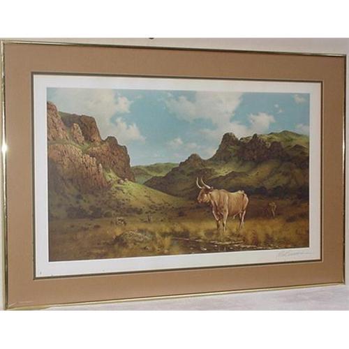 Robert Summers was born in 1940. This 1973 Print, 21" X 31", of a Texas longhorn is signed in pencil by the artist.