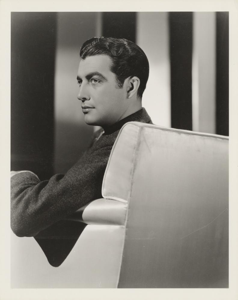 Gelatin silver semi-gloss double-weight 8 x 10 in. print of Robert Taylor by Stephen McNulty; with photographer and M-G-M rubber stamp and portrait number 3912 in pencil on the verso. Fine; with smudging.