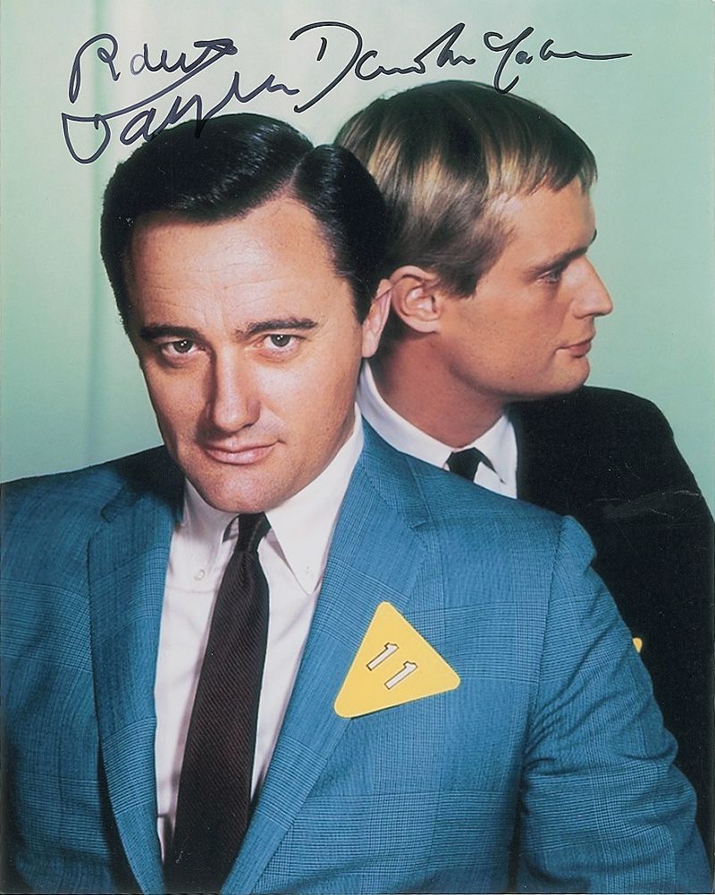 Color satin-finish 8 x 10 photo of the Man from U.N.C.L.E. duo, signed in black felt tip by both. In fine condition, with a couple light surface marks.