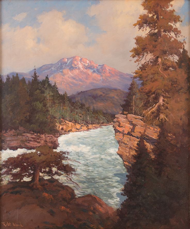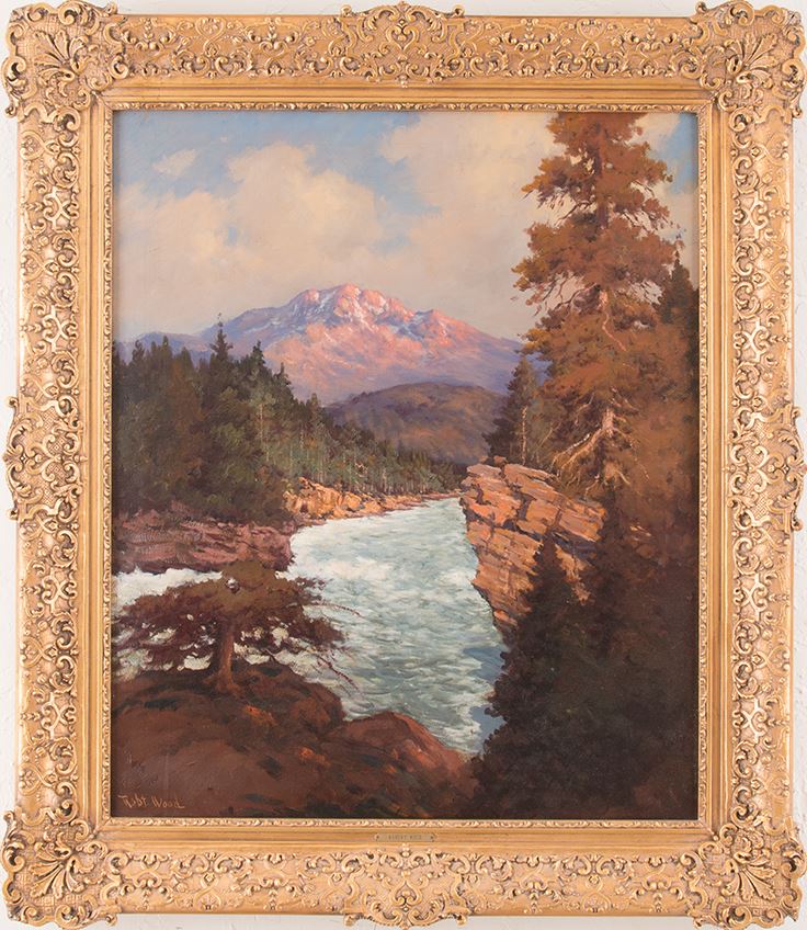Robert W. Wood (1889-1979). Rushing River. 27" x 22" oil on canvas. Signed lower left. Verso: Old collection sticker.
