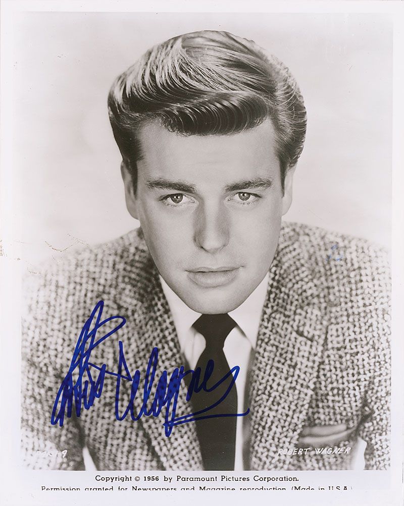 Glossy 8 x 10 photo of a young Wagner in a jacket and tie, signed in blue felt tip. In fine condition, with some light adhesive residue to left side.