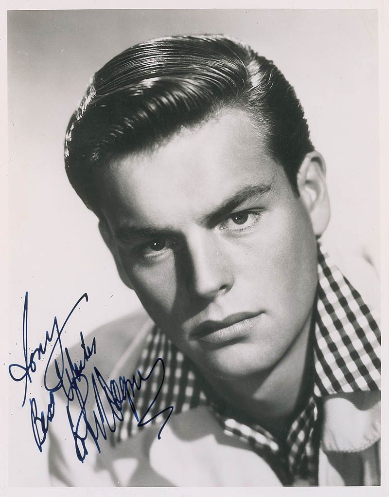 Vintage glossy 7.5 x 9.5 photo, boldly signed and inscribed in fountain pen “Tony, Best wishes, Robert Wagner.” In fine condition, with light dings to the lower corners.