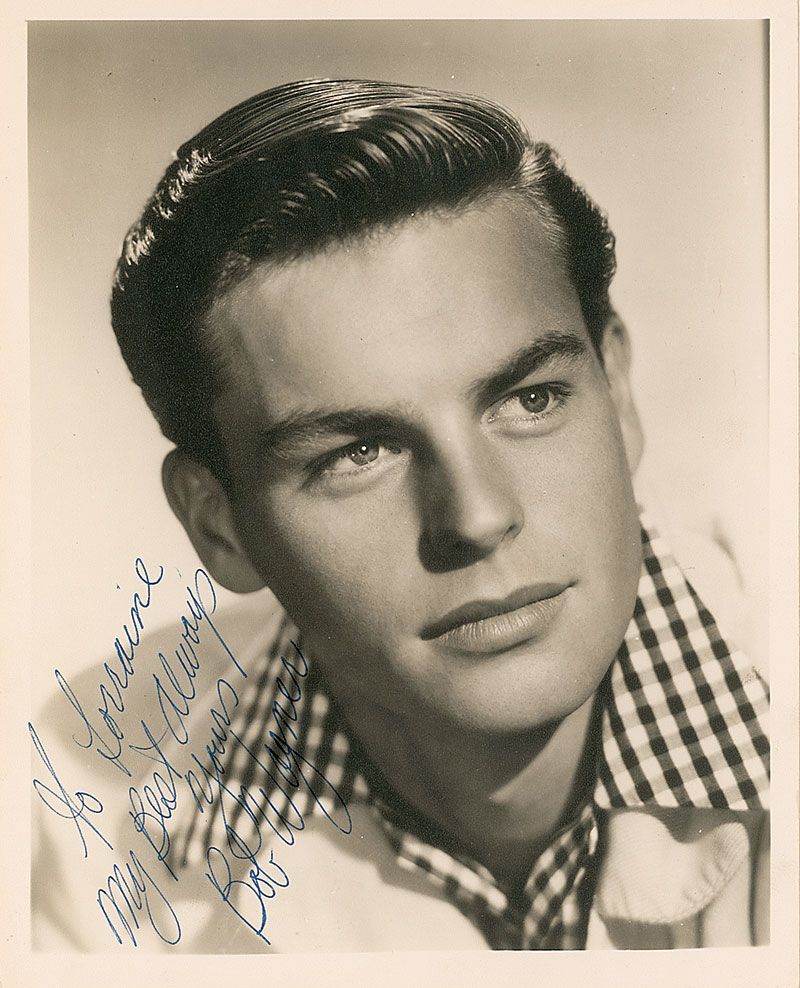 Vintage matte-finish 8 x 10 head-and-shoulders photo, signed and inscribed in blue ballpoint “To Lorraine, my best always, Bob Wagner.” In fine condition, with some light contrast to last name of signature.