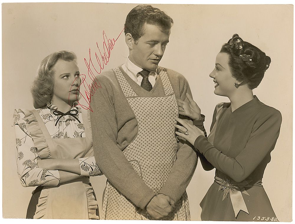 Glossy 9.25 x 7 publicity photo of Walker with two actresses, signed in red ink. In very good condition, with scattered creases, trimmed edges, a small tear to the bottom, and slight irregular adhesion to the signature.