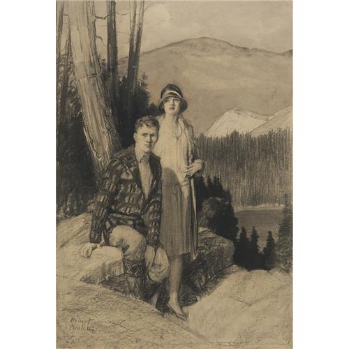 Robert Wesley Amick (American,1876-1970), Pioneers, c.drawing,25in. x 18in., signed.Colorado artist and illustrator known for his scenes of Native Americans and western landscapes.Amick studied at the Art Students League and at Yale University.He worked i