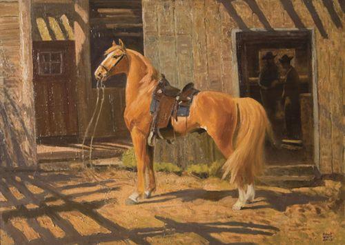 Robert Wesley Amick (1879-1970). "Ready to Go". 26" x 36". Oil on Canvas. Fine condition. (est $8,000-10,000)
