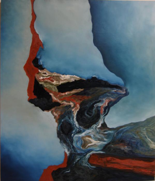 A flowing stream of naturalistic colors pulls the viewer in to this alluring original painting . * * Artist: Robert Winslow Title: Aqua Azul 2 Medium: Oil on canvas Size: 3 x 4 feet Bio/Resume * Robert Winslow (1950 - ) is a well known Chicago artist working in both painting and 3 dimensional art, all with expressive abstract forms. He is recognized especially for his large corporate sculptures. Some can be found at the nation's top companies, such as McDonalds Corporation, World Headquarters, Oak Brook, IL, Siemen's Medical Systems, Chicago, IL, Philadelphia Savings Fund Society, Philadelphia, PA, and many others. He has been in numerous exhibitions, including the Chicago International Art Exposition, Habitat Gallery in Chicago, * Rockford College, Rockford, IL, The Anita J. Welch Competitive Sculpture Exhibition, Scottsdale, Arizoa, and more. * His art is on display at some esteemed museums, including Scottsdale Center for the Arts, and the Los Angeles County Art Museum. * Further information on Robert Winslow can be found in various newspaper articles, including these: "Corporate Art in Chicago," Chicago Sun Times; "Sculptor Has Carved Spot in World of Art," Suburban Trib, Chicago; "Sculpturing- Art and Business," Salem Times Commoner, Salem, IL